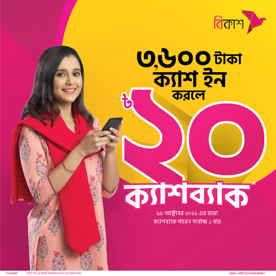 এবং ৩৬০০ টাকা ক্যাশইন করলে ২০ টাকা ক্যাশব্যাক।